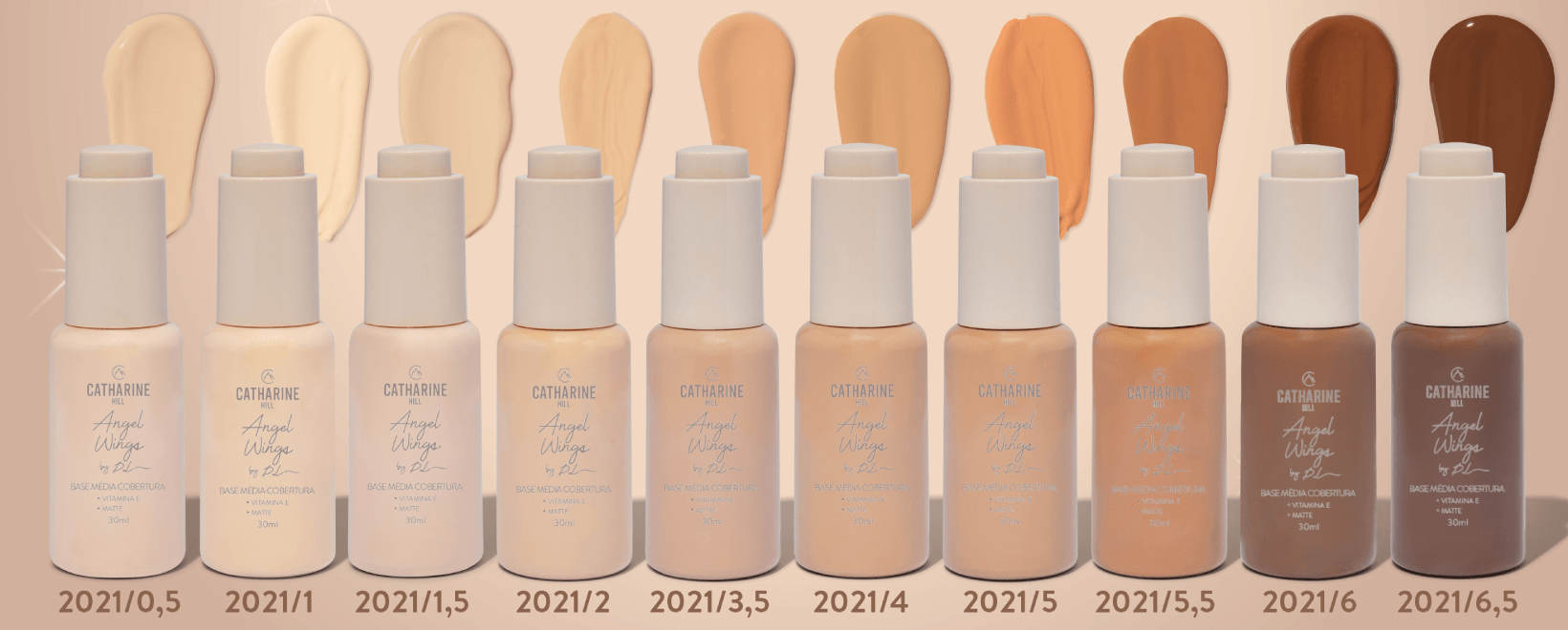 A Base Média Cobertura da linha Angel Wings, em parceria com a maquiadora renomada Pri Lessa, oferece a combinação perfeita de cobertura e acabamento natural. Com acabamento Oil Free e resistente à água, essa base possui uma textura macia e toque aveludado, proporcionando uma maquiagem leve e fantástica. Com longa duração na pele, ela foi elaborada com ácido hialurônico, Vitamina E e é vegana. Indicada para todos os tipos de pele.