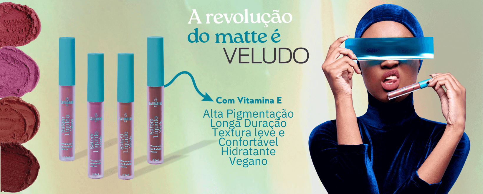 Os Batons Veludo possuem uma formulação única, trazendo alta pigmentação, textura confortável, alto nível de hidratação por conter vitamina E e um sensorial ultra elegante e matte.