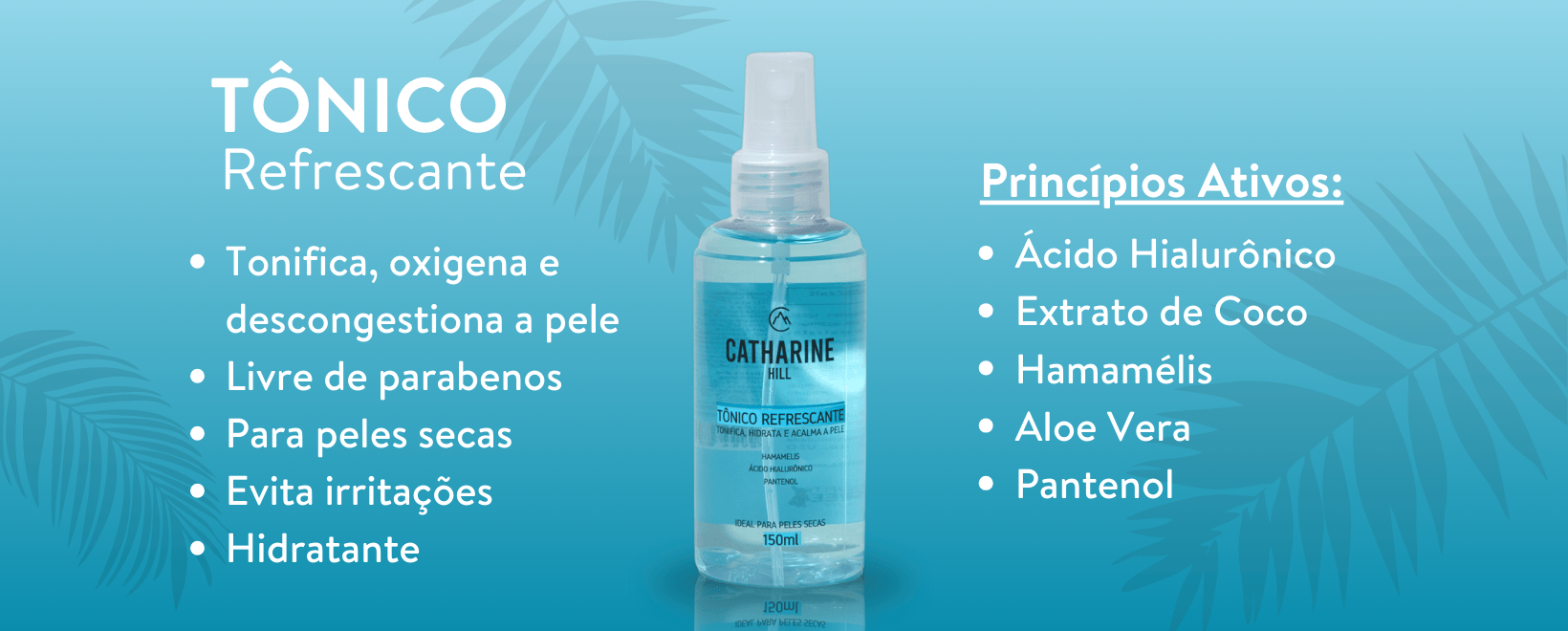 O Tônico Refrescante Catharine Hill foi desenvolvido para proporcionar sensação de frescor, controlar a oleosidade e preparar a pele para a maquiagem, garantindo um acabamento suave e duradouro.